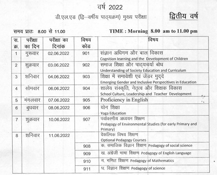 | MP D.El.Ed Time Table 2025 | From July 2025 |