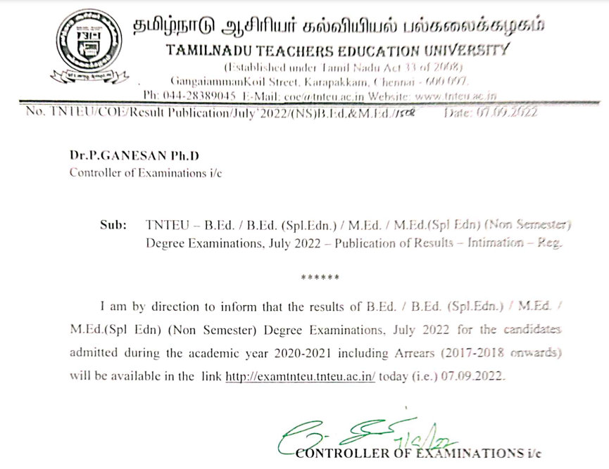 | Article Category | TNTEU B.Ed M.Ed Exam Result 2025 |